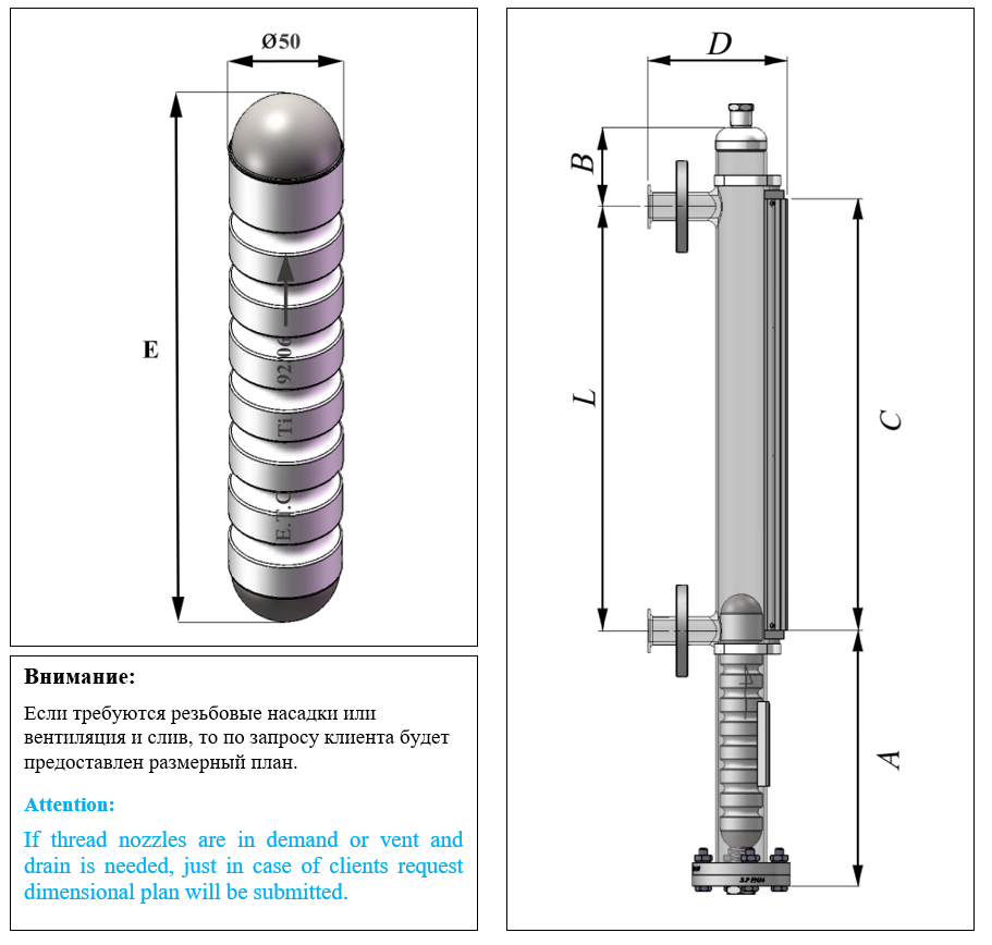 Труба основного корпуса | Main Body | Нержавеющая сталь | SS304L& SS316L |