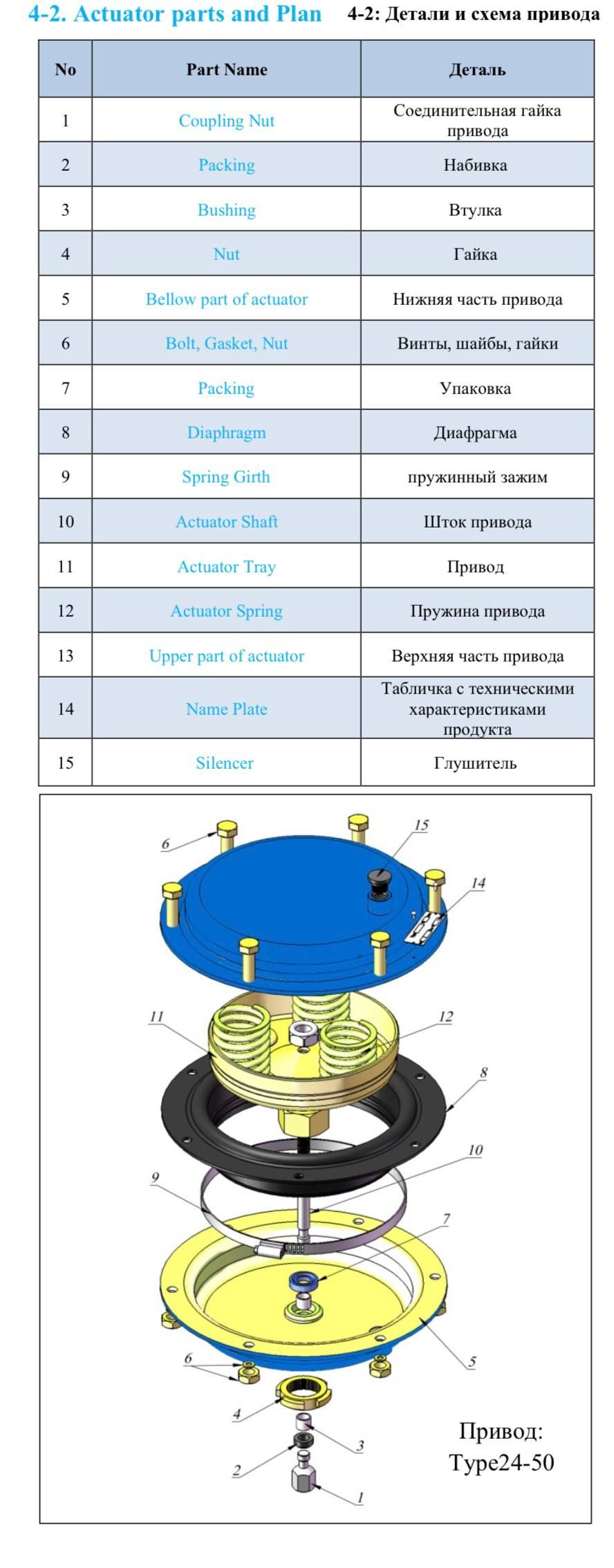 привод. Стоит отметить, что уплотнение специфично для разных жидкостей. Например, для едких кислот и горячих масел между валом и крышкой необходимо разместить механическое уплотнение (сильфон), чтобы повысить надежность уплотнения. Если температура жидкости больше +200 °C или меньше -10 °C, необходимо использовать изолирующую деталь для защиты диафрагмы и электрических деталей (I в P) . Внимание: для регулирования I в P и его установки и настройки используйте руководство I в P. При использовании I в P обратите внимание на его тип.