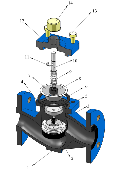 Этот клапан обычно открыт и постепенно закрывается с повышением температуры. Этот клапан вместе с соответствующим датчиком работает по принципу расширения жидкости. Датчик этого клапана размещается внутри резервуара или на желаемом пути прохождения жидкости для контроля температуры. Внутренняя часть датчика заполнена расширяющимся маслом. Увеличение температуры жидкости вызывает передачу температуры масла внутри датчика и, таким образом, приводит к увеличению объема. Это увеличение объема приводит к перемещению штифта рабочего элемента. Эта увеличенная сила передается на шток клапана и плунжер, и таким образом изменяется пустое пространство между седлом и плунжером, и можно контролировать количество потока, проходящего через клапан.