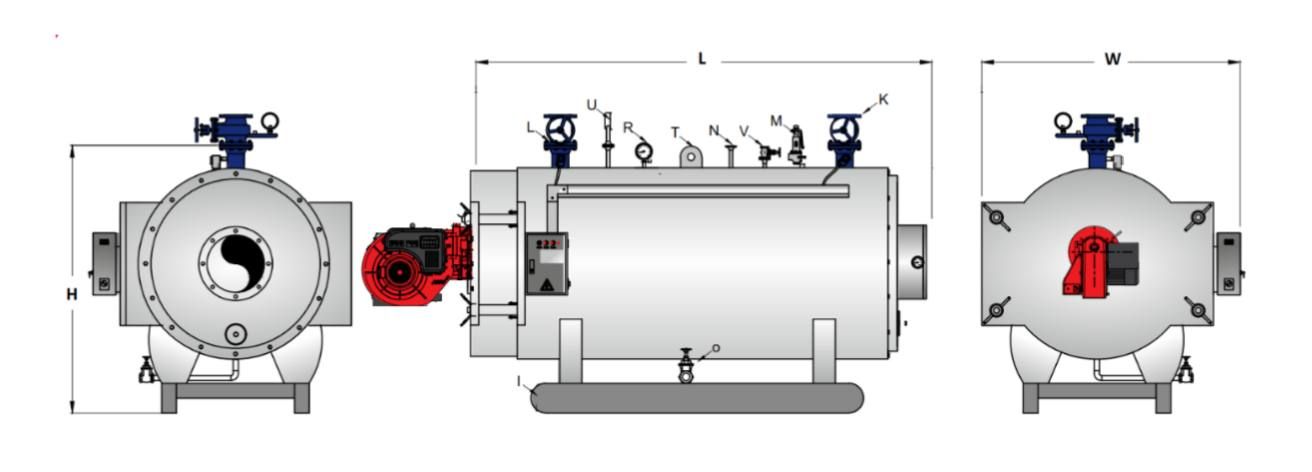 Теплопроизводительность: 2,000,000 ккал/ч (2325 кВт) Габаритные размеры (ДШВ): 3720*1990*2190 мм Транспортный вес при 10 бар: 4750 кг КПД с экономайзером: До 92% Рабочее давление: 6 бар, 8 бар, 10 бар, 12 бар, 16 бар Испытательное давление: 10 бар, 12 бар, 15 бар, 18 бар, 24 бар